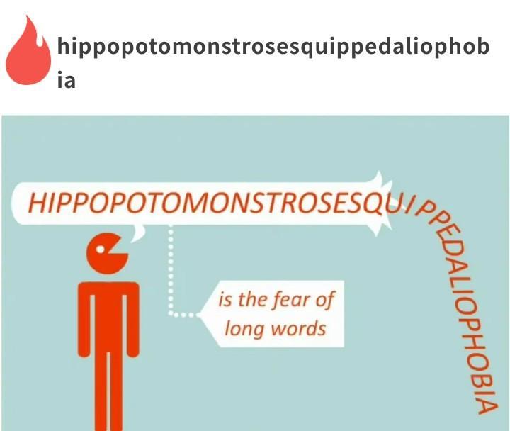 长单词恐惧症,指在阅读时对较长单词的一种恐惧情绪。英文名是Hippopotomonstrosesquippedaliophobia(是不是还挺词如其意) 。