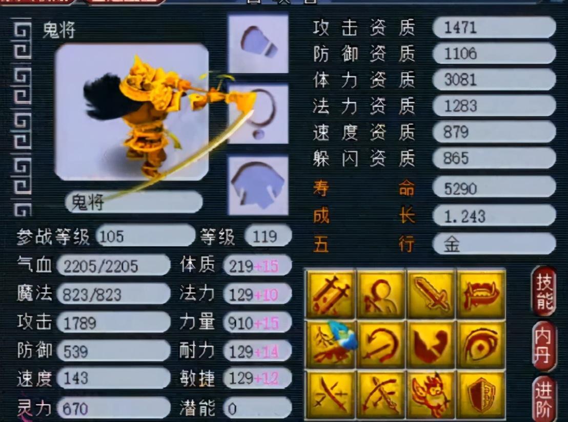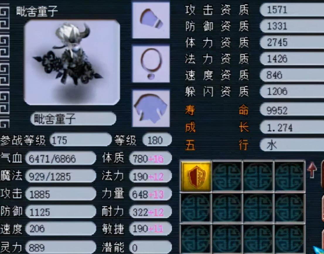 玩家居然还有只13技能苍鸾怒击的毗舍童子!这攻资、成长确实是难得一见的极品。