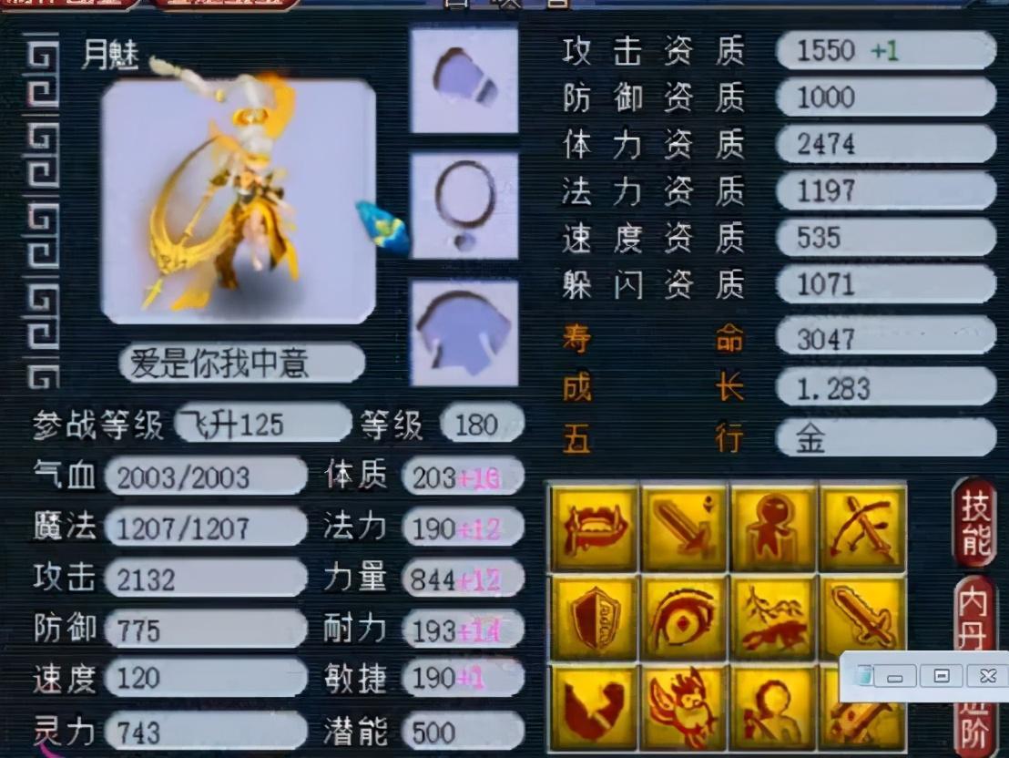12技能苍鸾怒击的月魅!这只月魅,在高级进阶必杀、高级遗志的加成下,打PK,也有一战之力!