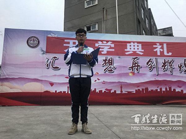 高二、3班的学生代表何洪涛以“学海泛舟 逐梦远航”为题上台发言,代表全体学生表示他们将在在新的学期珍惜青春,在学习中拓宽视野,胸怀祖国、放眼未来,借助公益与友善的力量,成为一个对社会、对民族、对国家有所贡献的人。