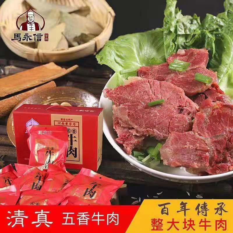 马永信品牌牛肉至今已有一百多年的历史,中华老字号,并成功申请郑州市非物质文化遗产等称号。马永信品牌牛肉创始人马玉顺,早在民国时期就享有盛名(《新密县志》有载)。马家制做的牛肉配方独特、加工严密、制作精细,成品具有色鲜、味美、筋烂、肉面、气息芳香、余味悠长的特点。食用过的顾客都赞不绝口称其确有“五香牛肉”之美称,实属传世佳作,人间美味!