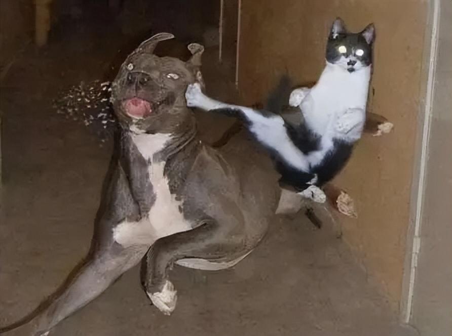 怪狗出生没有一周,开始和十多年的老猫打架。打得那叫一个天昏地暗,怪狗开始上蹿下跳,用它奇特的走位想缠住老猫,想给老猫周旋,老猫,蔑视地看了他一眼,好像再说,小子回家在练几年吧,你的功力还不行。然后老猫迈着悠闲地的步伐想回猫窝睡觉,怪狗不服,好像再说,我功力现在已大成,跟你打架犹如,小孩摸小鸡,手到擒来。
