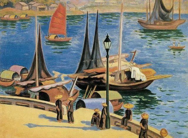15、香港码头 陈抱一 1942年 布面油画 72×90.5cm 中国美术馆藏