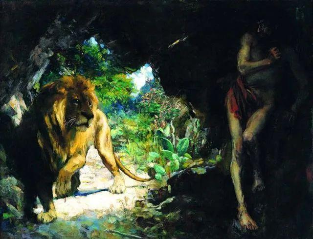 奴隶与狮 徐悲鸿 1924年 油画 123×153cm 油画《奴隶与狮》