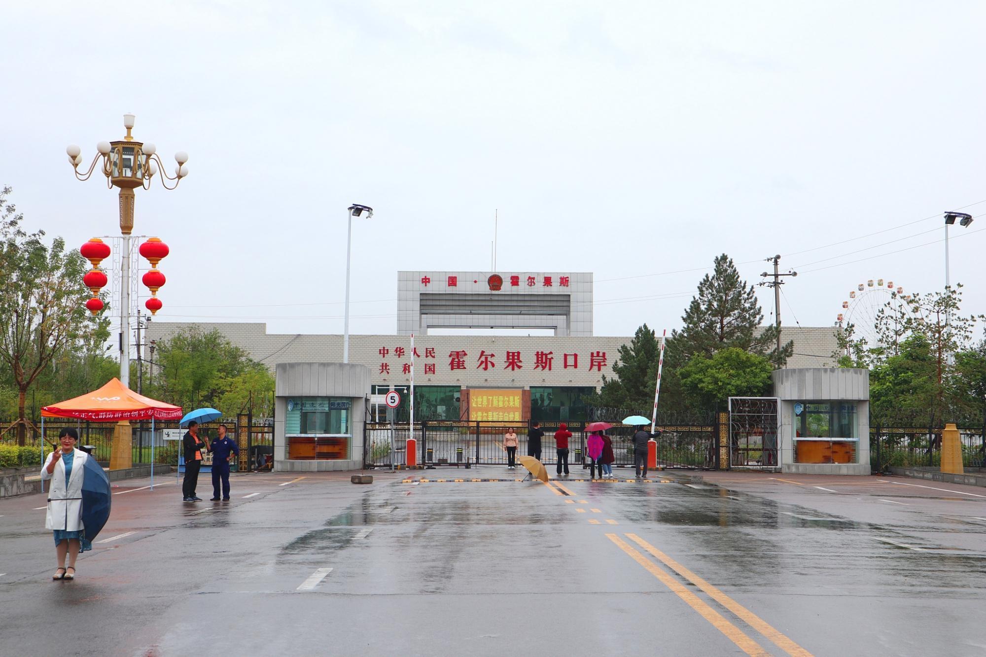 我是在乌鲁木齐参加的那拉提草原和赛里木湖的三日游,本日冒雨前往霍尔果斯国门景区。可惜啊,跟团游没有时间去亲眼目睹国门和中哈合作区血拼,我们主要的活动都集中在这里——国门景区国际游客接待中心。