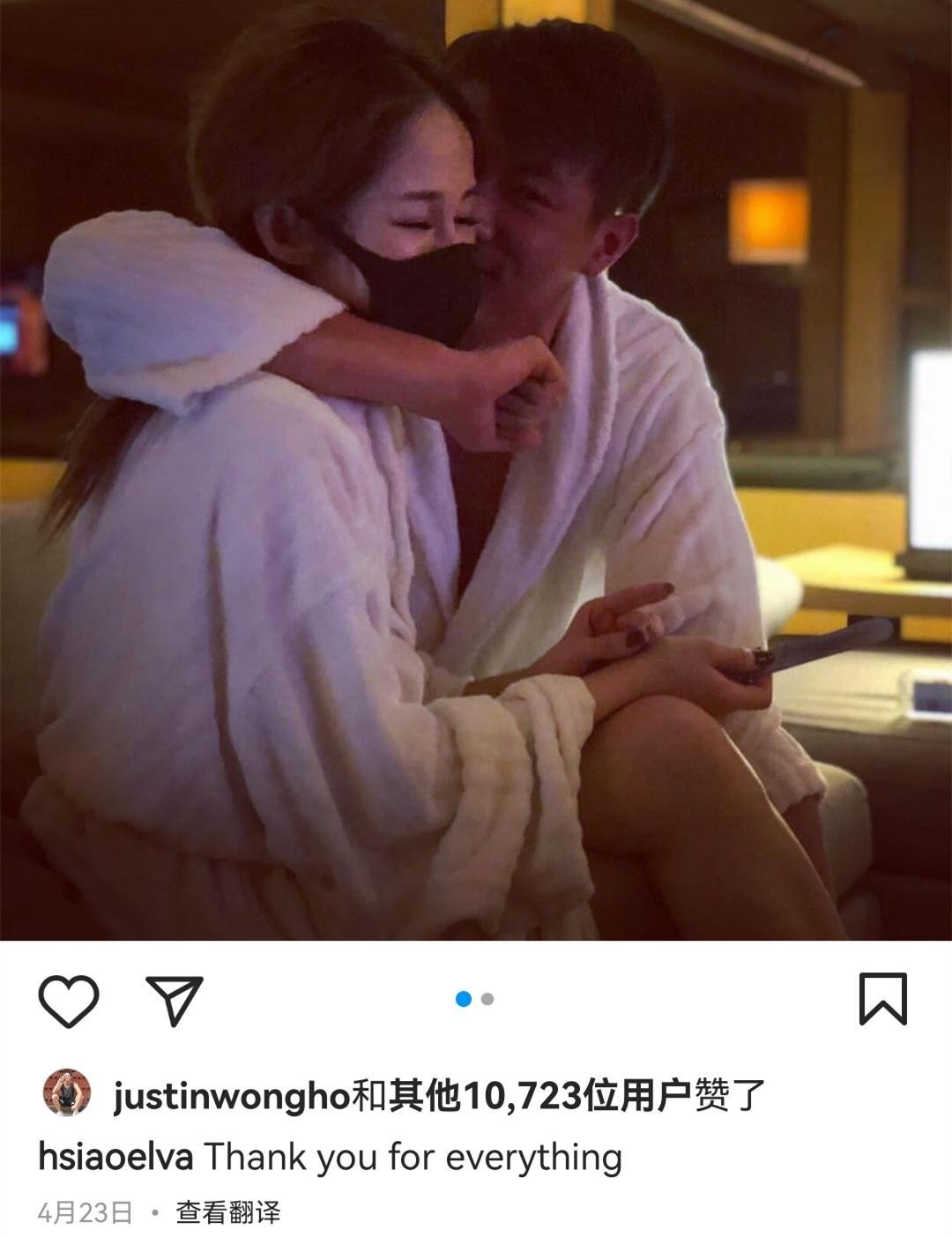 她最后一次晒合影是4月23号,两人穿着同款白色浴袍亲密地抱在一起,那时候看上去仍然很幸福。但是之后这三个月,这对情侣没有再同框,也没提到对方一句。