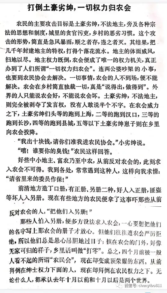 《湖南农民运动考察报告》篇三:打倒土豪劣绅,一切权利归农会