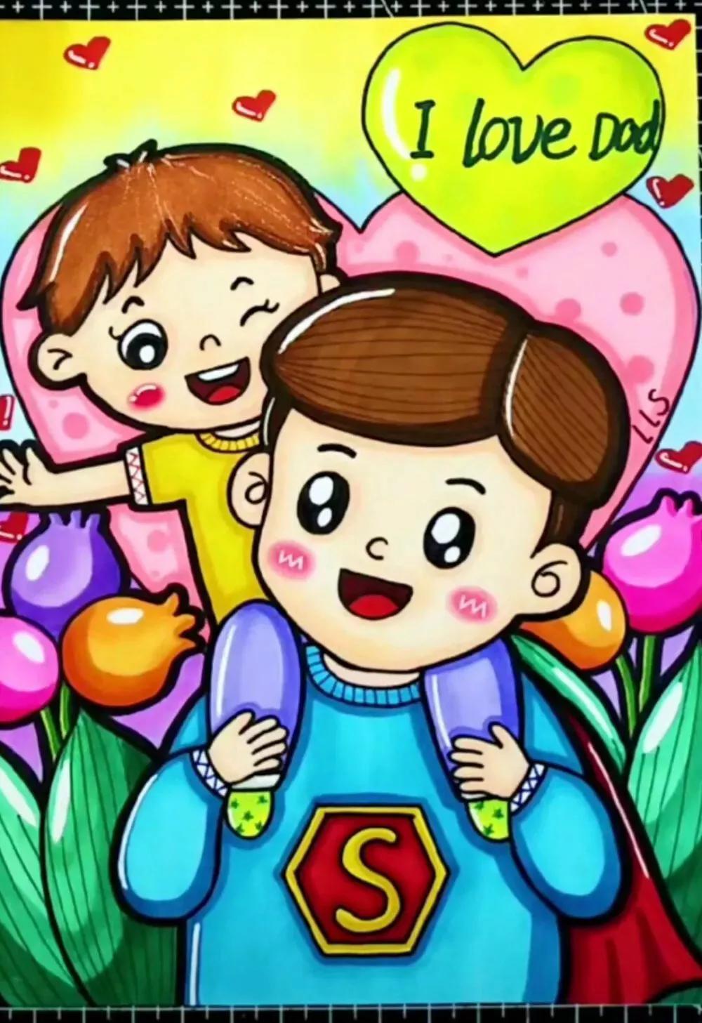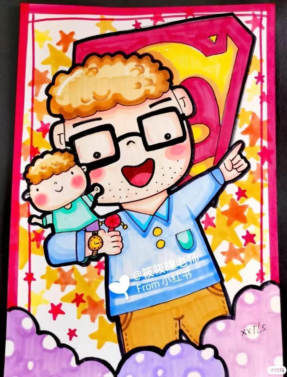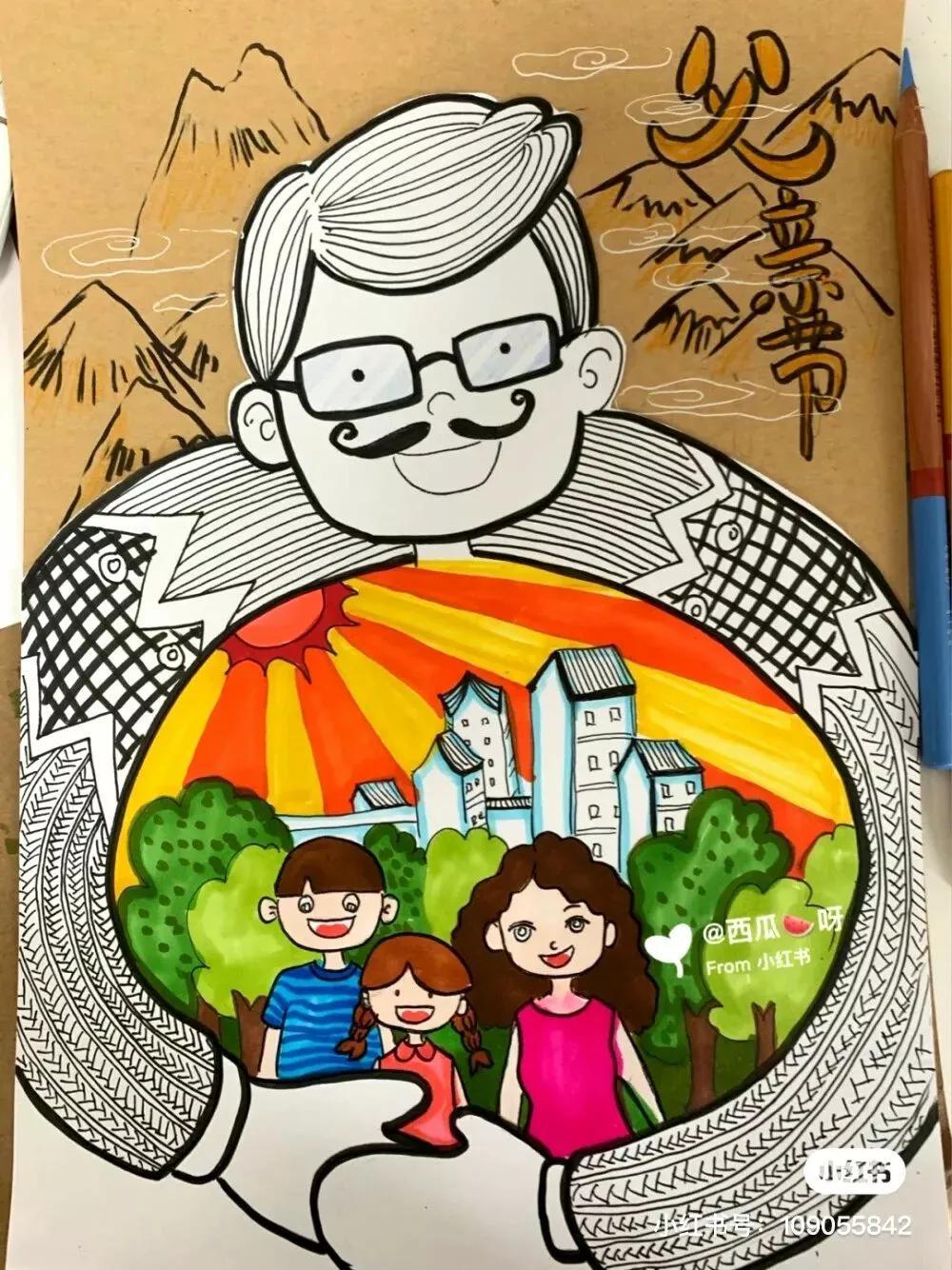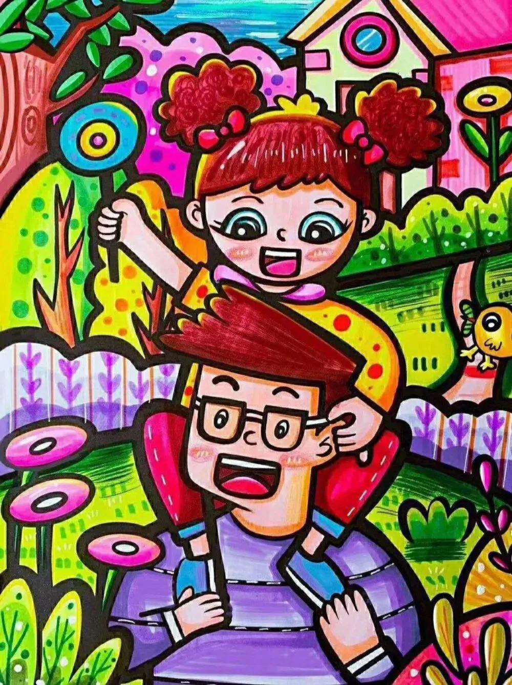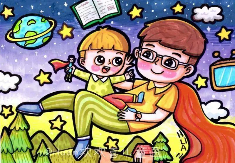 父亲节主题儿童绘画49张,创意满满!太赞啦