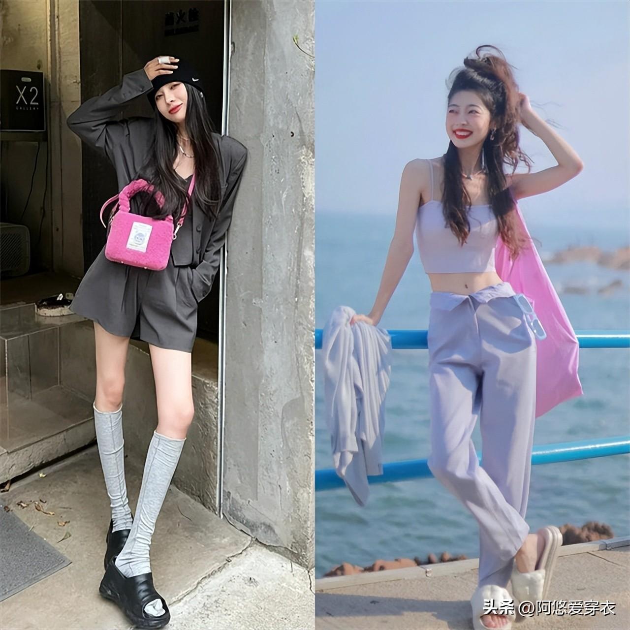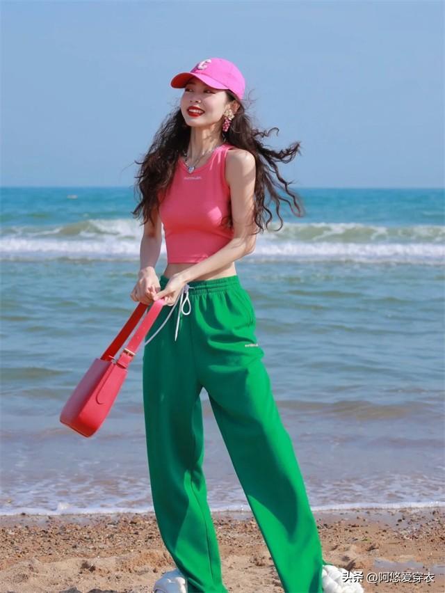 修身露脐芭比粉短上衣,搭配高腰基础色长裤,不管是经典的灰粉配还是甜美的粉蓝配色,都不会让人失望。结合二八分高腰线,还愁没有大长腿?