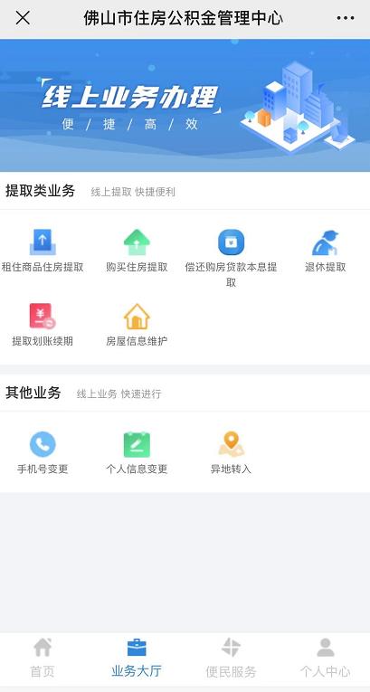 10月13日,佛山市住房公积金管理中心在网上办事大厅上线购房提取业务,市民足不出户即可办理购买自住住房提取住房公积金的业务。10月21日,“购买自住住房提取业务”服务上线官方微信公众号“佛山公积金”。