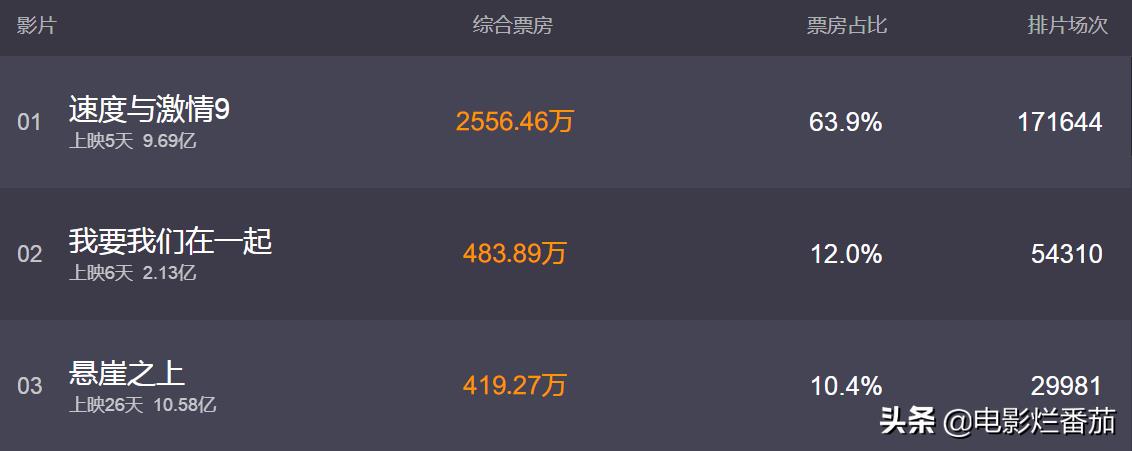 但《速激9》票房目前依然增长迅猛,5天9亿+的增长迅速和七成排片,都证明观众喜欢看,电影院也对其抱着绝对的信心。