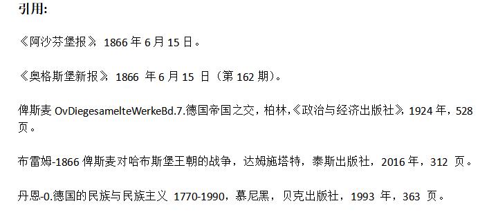 笔者认为,考虑期刊对1866年6月14日通过的期刊的反应就足够了,美因河畔法兰克福的德意志联邦联邦议院决定动员盟军对普鲁士执行处决,正是这个决定最终使战争不可避免。