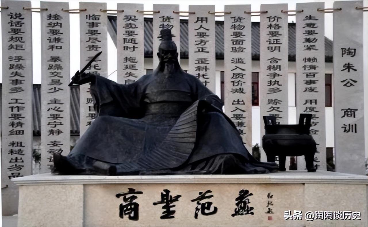 范蠡初为楚国名士,后不满于楚国政治的黑暗遂与文种一起投奔越国,在越国辅佐越王勾践提出“计然七策”之五,就帮助越国复兴,进而灭掉吴国,一雪会稽之耻,成就了勾践的霸业。范蠡了解勾践其人,可共患难,不可同富贵,于是功成名就后急流勇退,更名改姓,隐居山野,游走于天地之间。期间三次经商成为巨富,然后又三次散尽家财,后定居于宋国陶丘,自号“ 陶朱公”。范蠡是中国古代早期的商业理论家,他有治国理财的实际经验,他提出的'农末俱利'的价格政策和'平粜齐物'的经济主张有重要的理论意义和实践意义。“劝农桑,务积谷”、“农末兼营”、“务完物、无息币”、“ 平粜 各物,关市不乏,治国之道也。”、“夏则资皮、冬则资絺、旱则资舟、水则资车,以待乏也。” 等至今对现代的经济建设也有积极的现实意义。被后人尊称为“商圣”。