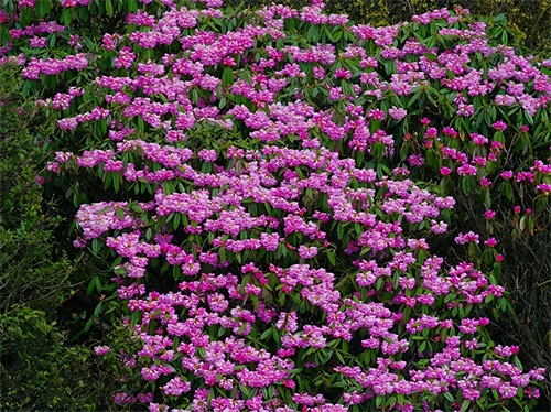 这里生长着杜鹃花5个亚属中的全部品种,具有密集、高大、耐寒、花期长的特点,最难得的是一树不同花,可在一棵树上开出不同颜色的花朵,达7种之多。而树龄千年的杜鹃花王,更是繁花万朵,独树成春。