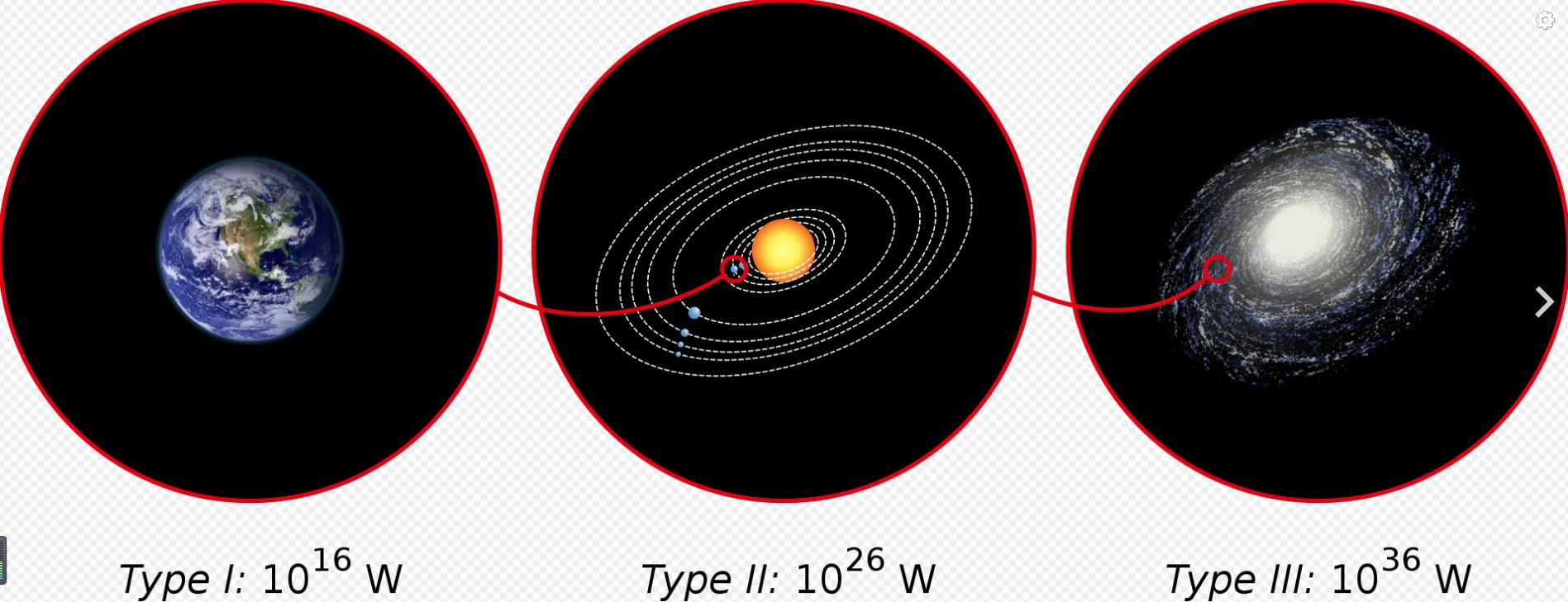 他提出用能量级把文明分成三个量级:I型、II型和III型(为了偷懒后面会用1型,2型表示),作为一种衡量文明技术进步的方法。该指数遵循宇宙中天体物理结构的尺度。相应的能力全面管理能源资源。