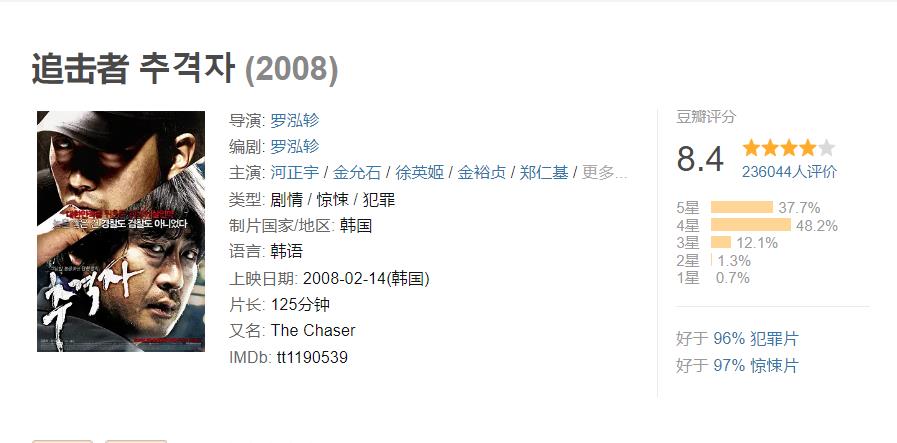 这故事根据轰动整个韩国历代最残忍的杀人魔,柳永哲真实个案改编,主角英民和为了拯救一个女人追击他的唯一一名追击者之间惊心动魄的故事。