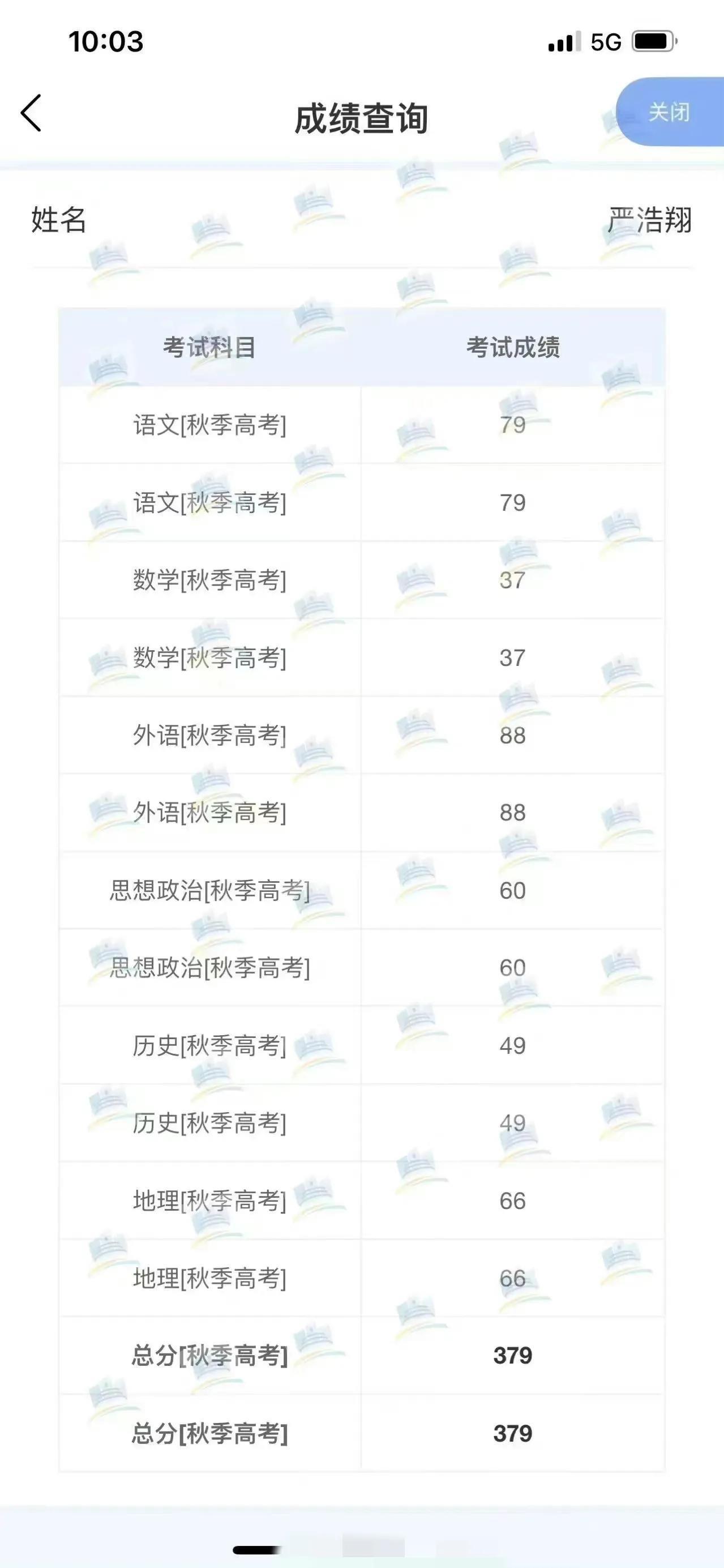 紧接着严浩翔的成绩也被网友们爆出来,总成绩是:379
