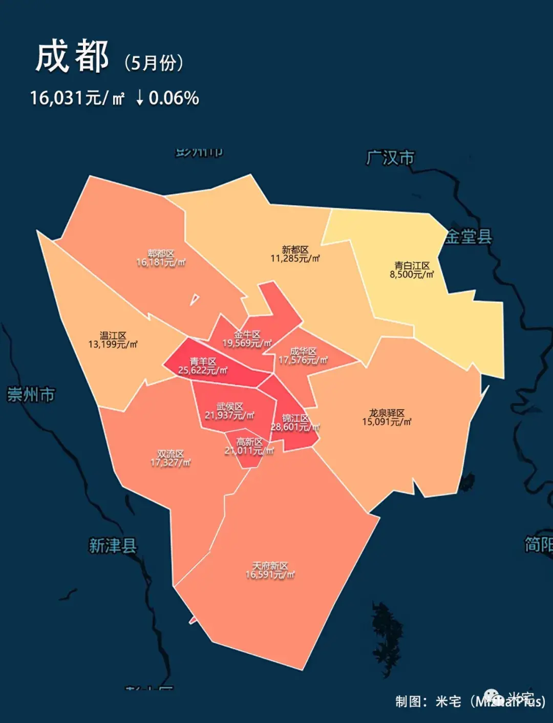 每月初,米宅将发布热点城市房价地图,包括:北京、上海、深圳(暂无数据)、广州、天津、杭州、合肥、南京、成都、重庆、武汉、郑州、长沙、西安、济南、福州、厦门、青岛、大连、沈阳、石家庄、南宁、太原、昆明、贵阳、粤港澳大湾区城市群、长三角城市群等,全国其余城市均价。