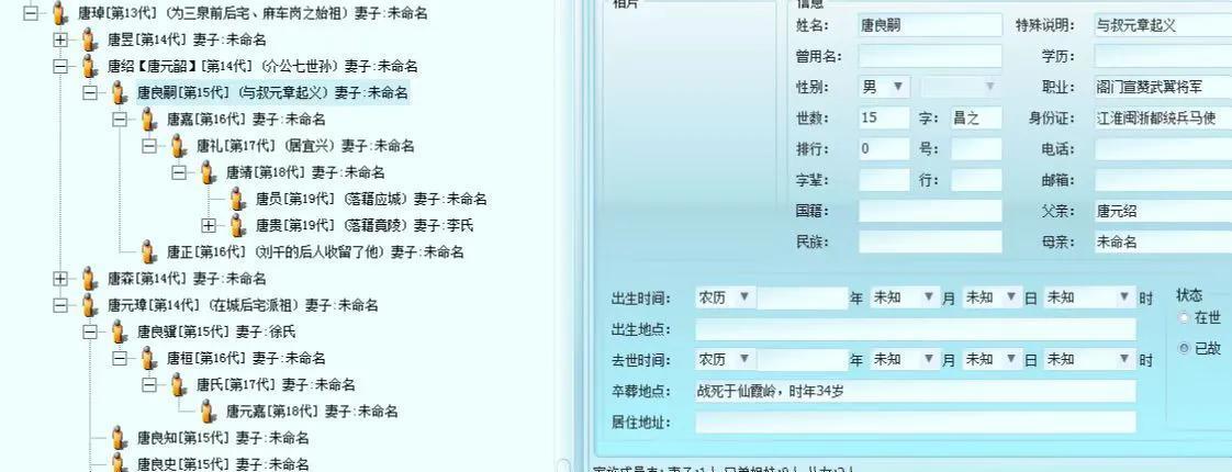 天门唐氏为良嗣曾孙唐贵之后裔,贵生得朋,得朋宦籍建楼于小东门乌衣巷。得朋生仕,仕告老还乡居景陵断堤坡唐家岭。