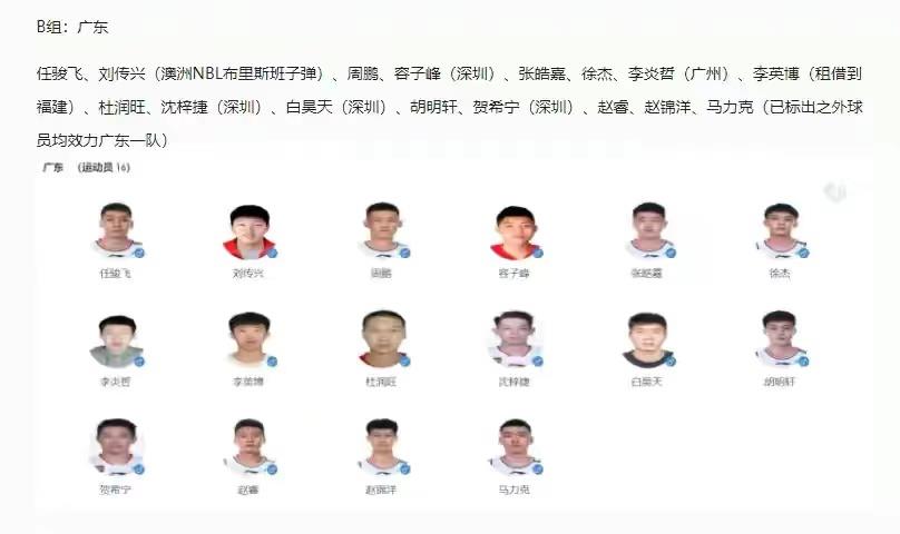 据前几日公布的全运会正赛大名单中,我们可以看到广东男篮的参赛人员,与此前的预赛的大名单相比,广东队的人员基本没有变化,除了刘权标的因伤缺阵。