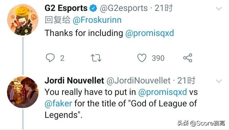 G2官推则皮了一下:感谢你把PromiseQ也算进去了!(*LOL之神,G2锦鲤)
