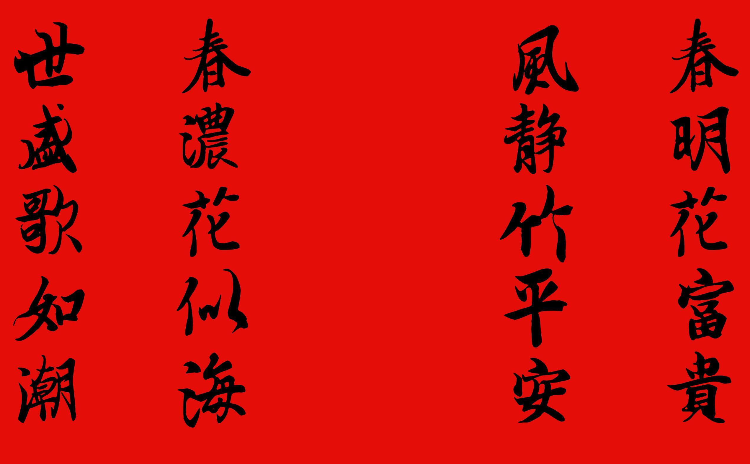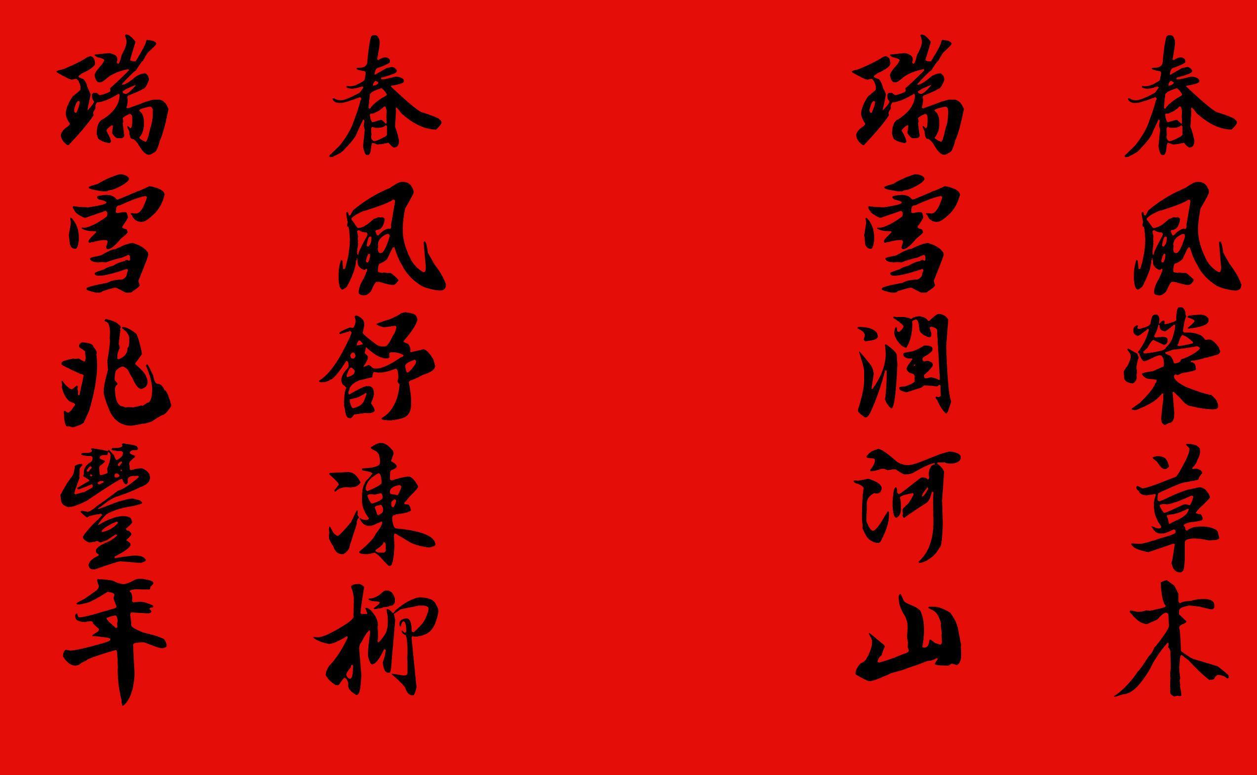 之前的五字联字号小,这次做了字号大点的。选用王羲之行书体,电脑输入的,因为我的行书也拿不出手。写春联需要的就收藏着用吧。横批在另一篇文章里,点我头像或关注我,到我之前发的文章里找。