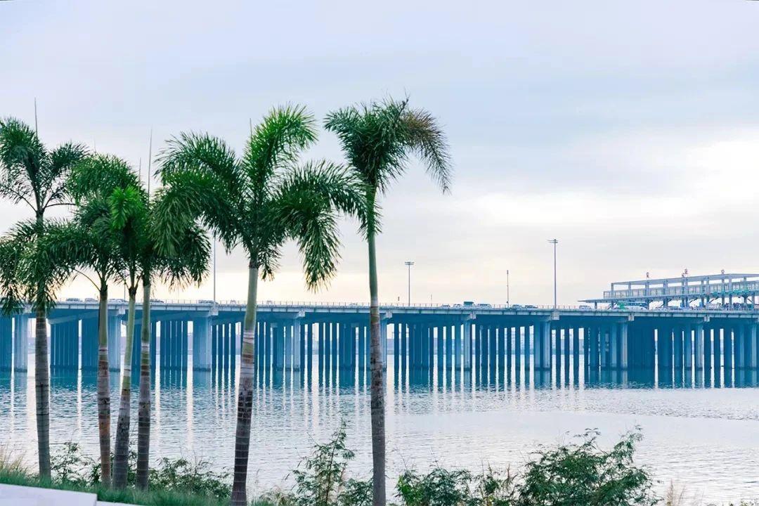 跨海大桥和对岸的城市高楼