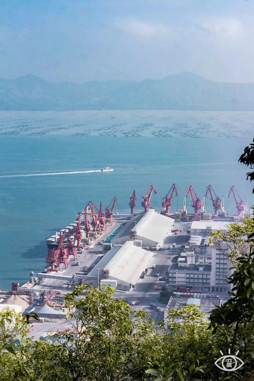 登高可以一览远处的赤湾港和蔚蓝大海