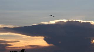 时常还能看到飞机穿越落日奇象