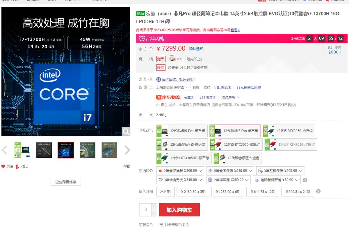 评价:新一代宏碁非凡Pro不仅有着精致轻薄的外观,2.5K高清触控屏,智慧商务会议应用,还首次搭载了13代酷睿i7标压处理器,全新的处理器延续了十二代酷睿颠覆性性能核/能效核混合CPU架构,14核心,20线程,且支持超频,性能更为强劲。另外宏碁非凡Pro轻薄本在内存方面至高可选用16GB LPDDR5的高频内存,性能相对上一代提升了50%,应用加载速率更快,电压更低更节能,算的上是轻薄本范畴的高配置版本。