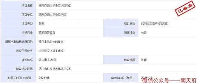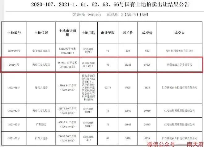 2021年12月,该院校又在眉山仁寿县拿下846亩地块准备办学校,计划建成时间为2025年5月。