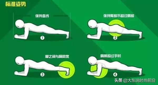 1、肩、腰、踝关节在同一直线上。2、大臂垂直于地面。 3、颈部保持自然放松。