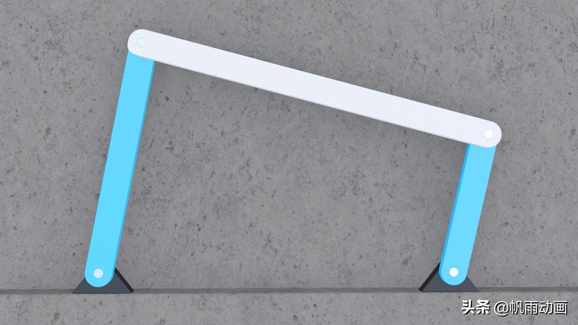 是这样的,固定的两个支点我们可以看作是一根杆,因为两个支点都固定在地面上,杆就省略掉了。这根固定的杆我们叫"机架",与之相连的两根杆称为"连架杆",连接两连架杆的杆件叫"连杆"。