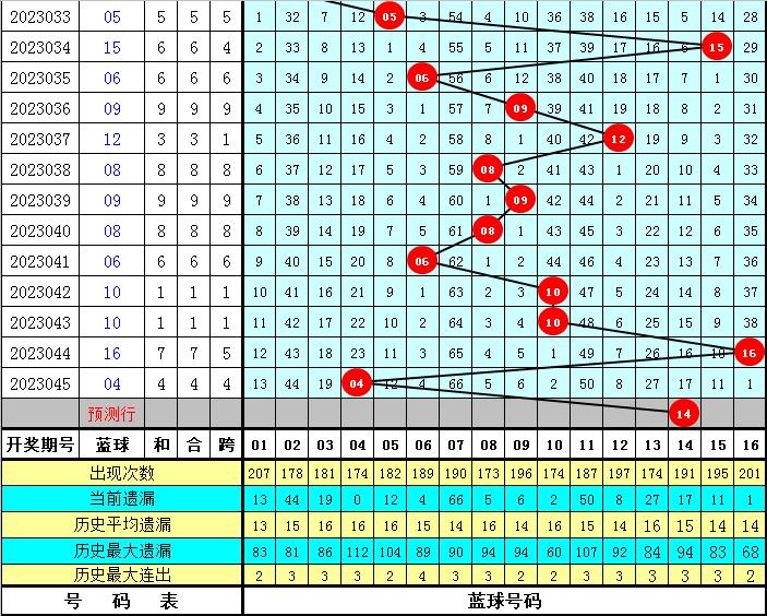蓝球分析:偶数蓝球近期表现活跃,目前连续开出6期,本期看好偶数蓝球再次开出,蓝球关注14。