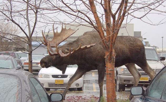 而近年来,不受控的野生驼鹿越来越多,它们远离丛林,闯入人类的栖息地,给人类带来不少安全隐患。仅在阿拉斯加,每年就有上千头驼鹿在交通干道上“碰瓷”,由于它们身强力壮,速度又快,结局往往逃离不了殉难。