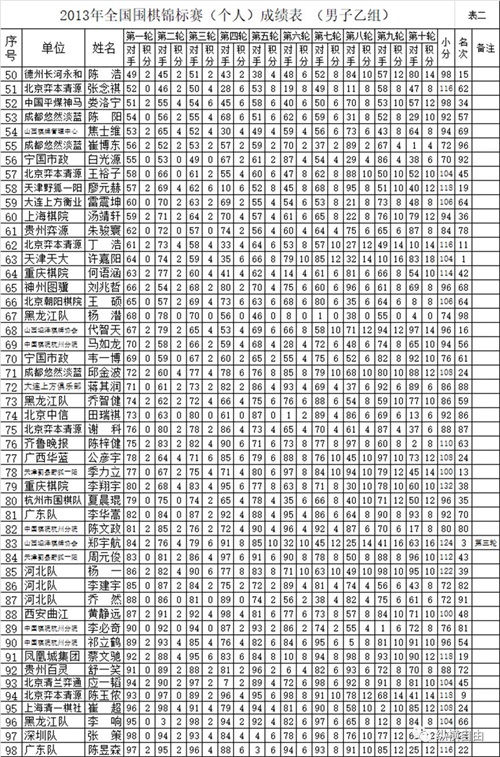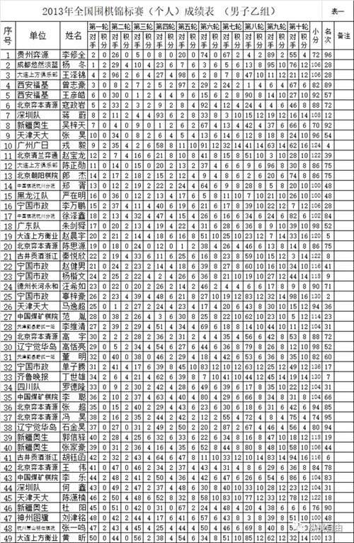 (2013年全国围棋个人赛男子乙组前六名,缺赵晨宇)