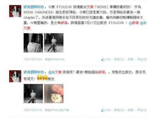 前段时间余文乐在自己潮牌最后压轴的就是舒淇,然后舒淇国际粉丝这个微博还说原来让舒淇压轴是别有洞天。这个舒淇国际粉丝是和舒淇互粉的,相当于半个官方。