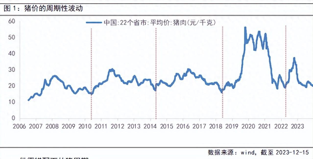 猪周期一般是指猪肉价格的周期性波动,从2006年以来,我国共经历四轮比较完整的猪周期,每轮猪周期的时间跨度往往在4年左右。本轮猪周期从2022年4月正式开启,上行周期持续了约半年,下行周期则已持续一年多,价格波动的速度明显加快,下行周期的时间跨度也显著长于上行周期,呈现出与过往猪周期不同的特征。