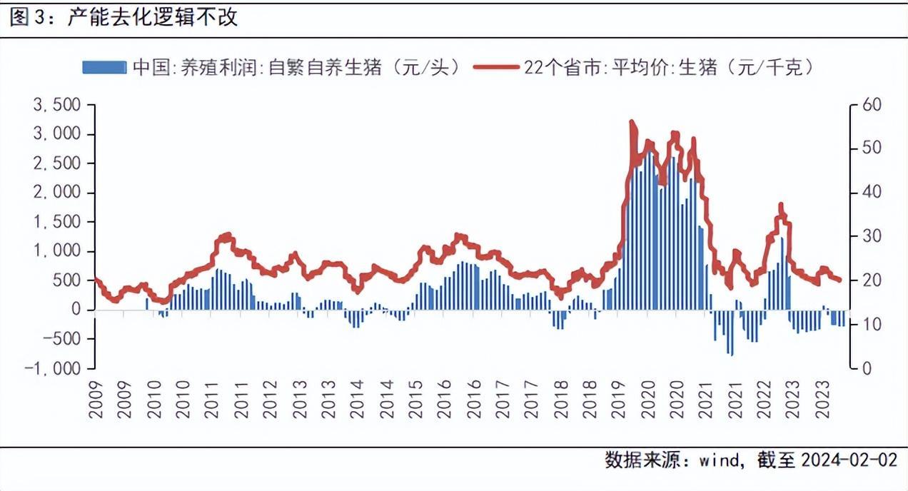 2024年1月我国CPI同比-0.8%,其中食品中猪肉同比-17.3%,拖累CPI下降约0.25个百分点,其中自然有春节错月下去年同期高基数的影响,不过猪价长时间在行业盈亏平衡点之下的低位震荡,也确实在不断考验行业参与者和投资者的耐心。本轮猪周期,到底走到什么位置了?