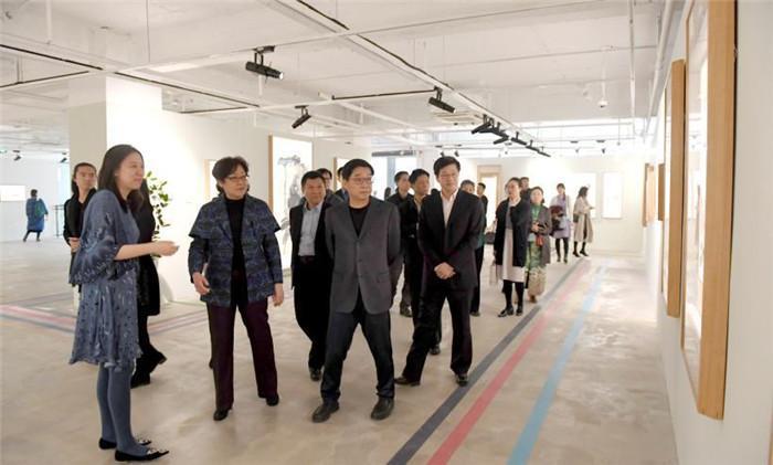 高小棋董事为嘉宾导览观看“三千大千世界”展览 左起:高小棋、刘亭、邢洪旺、赵磊、周茂非