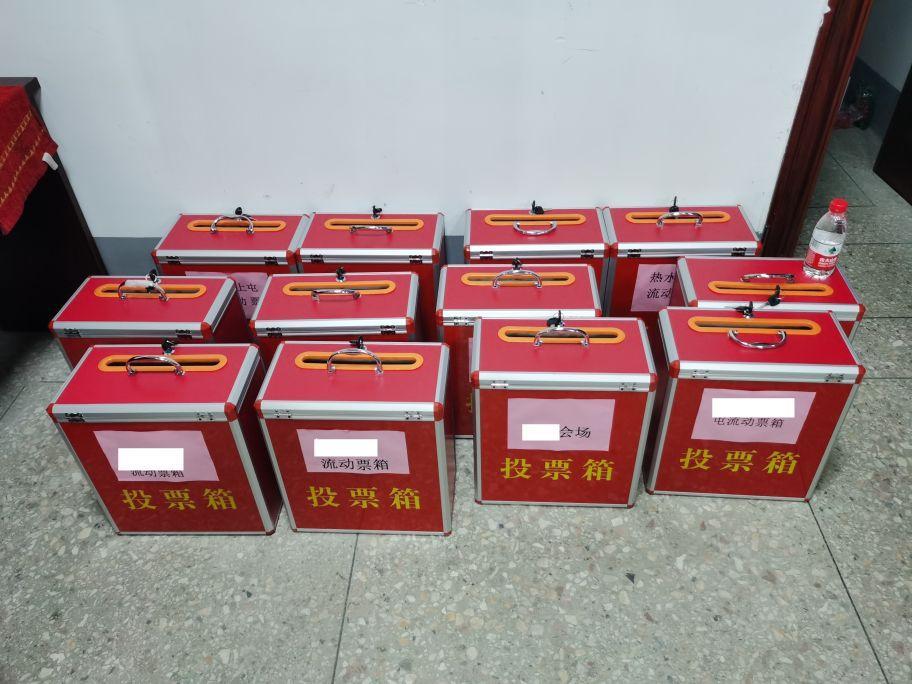 这就是选票箱,有中心会场选票箱和流动选票箱,因为村屯之间相隔比较远,不可能每个村民都到中央会场来投票,而且村民每天都有自己的活要做,所以为了不打扰到村民的正常工作,每个村屯都准备了一个流动投票箱,让村民在自己家里投票。