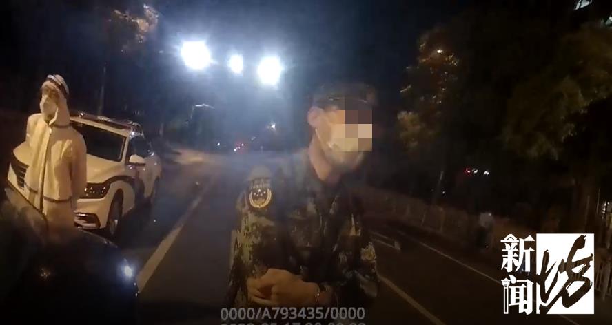 此时,车窗摇下,驾驶座上是一位穿着武警迷彩制服、领章佩戴大校军衔的男子,他出示了驾驶证、军官证。