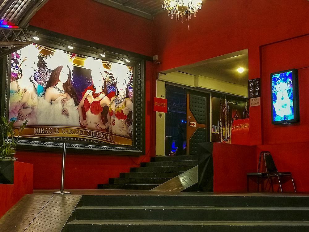 剧院的入口,在每一个场次的间歇时间里就会有人妖出来与观众合影留念,一般需付小费40泰铢合影一次。
