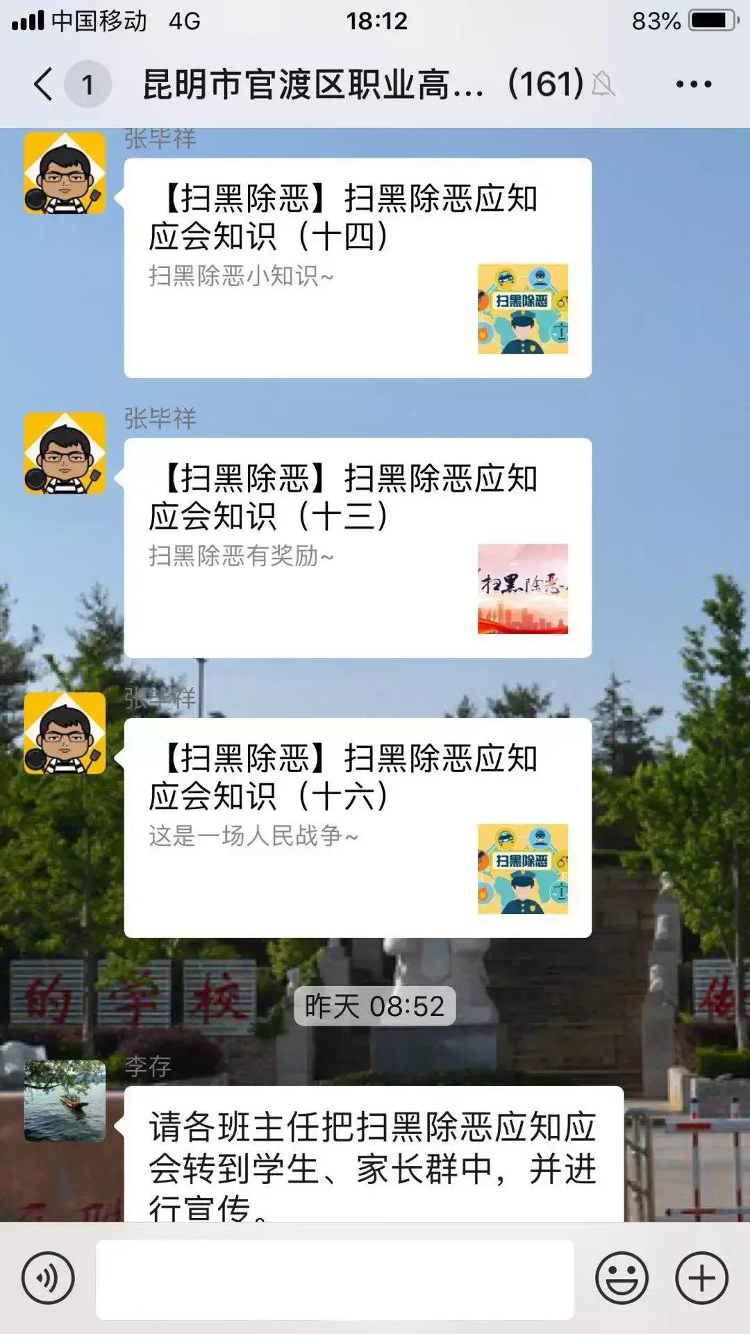 此外,学校还通过校讯通、家长群等媒介,向家长发送“扫黑除恶”相关信息,引导家长配合学校做好学生的教育工作;利用国旗下的讲话、教职工大会、黑板报、宣传栏、电子屏等多种方式,扩大扫黑除恶专项斗争的影响力,营造良好氛围,构建平安和谐校园,为学生健康成长保驾护航。