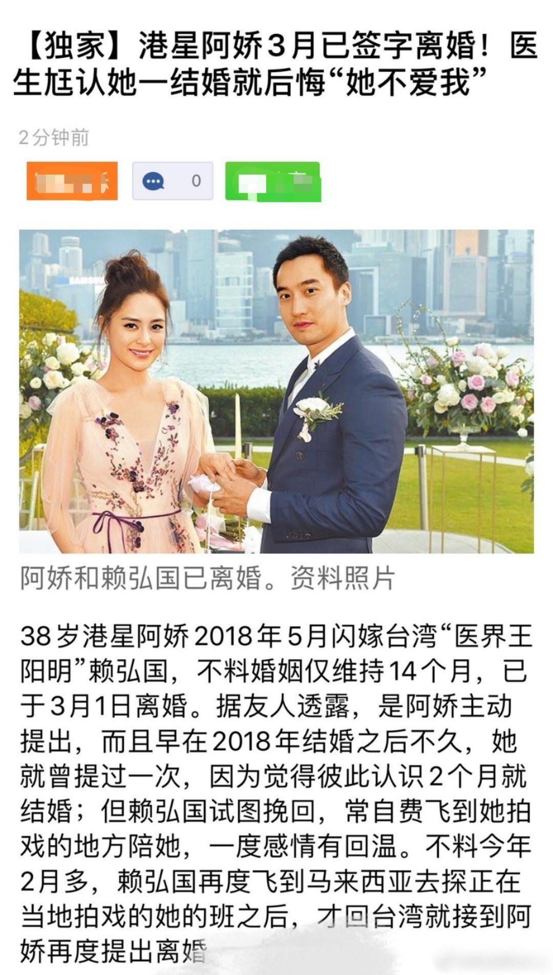 38岁阿娇与赖弘国离婚了!