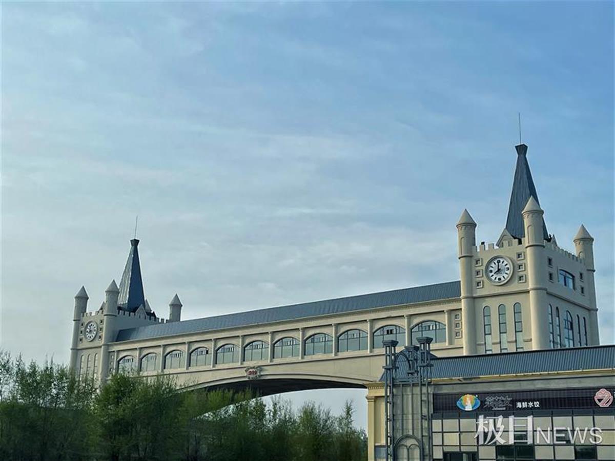 欧洲古堡式造型风格建筑在京哈高速凌空飞架,两侧互为对称,配有尖顶塔楼和时钟。远看如童话般的城堡,近看是京哈高速兴城服务区。
