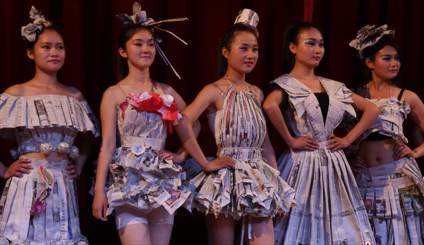 安徽某大学生的报纸裙式设计