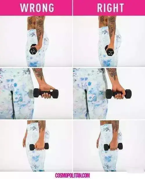 好像左边比较省力?没错,但这会让你的哑铃运动事倍功半,得不偿失。所以姿势要正确!