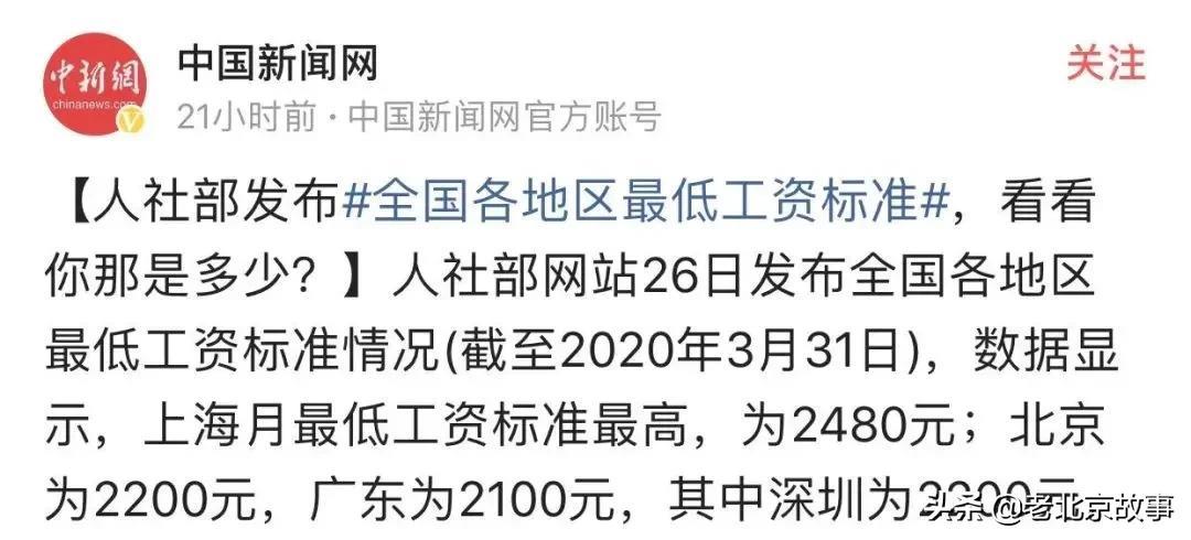 全国各地区最低工资标准,北京为2200元