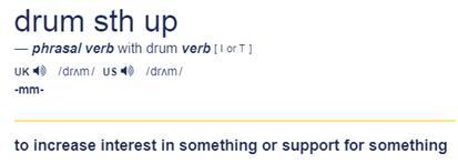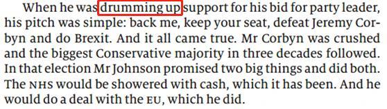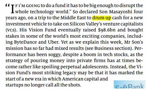 此外,The Economist October 17th 2020 Leaders 中 “Tech investing and the Vision Fund”这篇文章也出现过“drum up”。